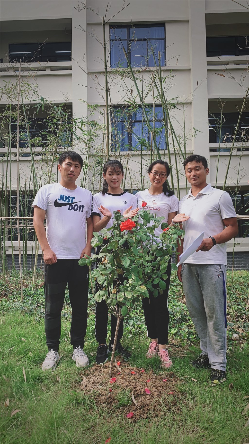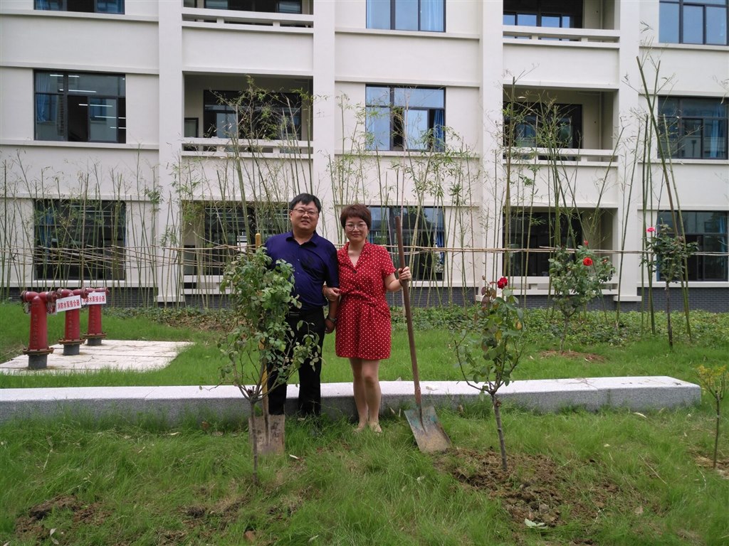在2019年教师节来临之际,学校工会向全体教职工家属发出了倡议,如果你想在教师节表达对爱人的感谢和关爱,我们倡议用一种新的表达方式,可以在我校的月季园亲手种上一株月季花,与她共同呵护它的成长,让爱落地,让爱生根,让爱传递,更让她时刻都能感受着你真情的陪伴。倡议书发出后,很快得到了部分教职工家属的响应,至教师节当天,有5位教职工家属利用下班时间和休息日来到学校月季园和他们的爱人一起种下了15株月季花,体现了他们对爱人浓浓的深情。这5位教职工分别是:张美华、朱珏、白雪、华严萍、史金花。我们向她们和她们的家人表示由衷的敬意!爱在教师节,情浓月季园。