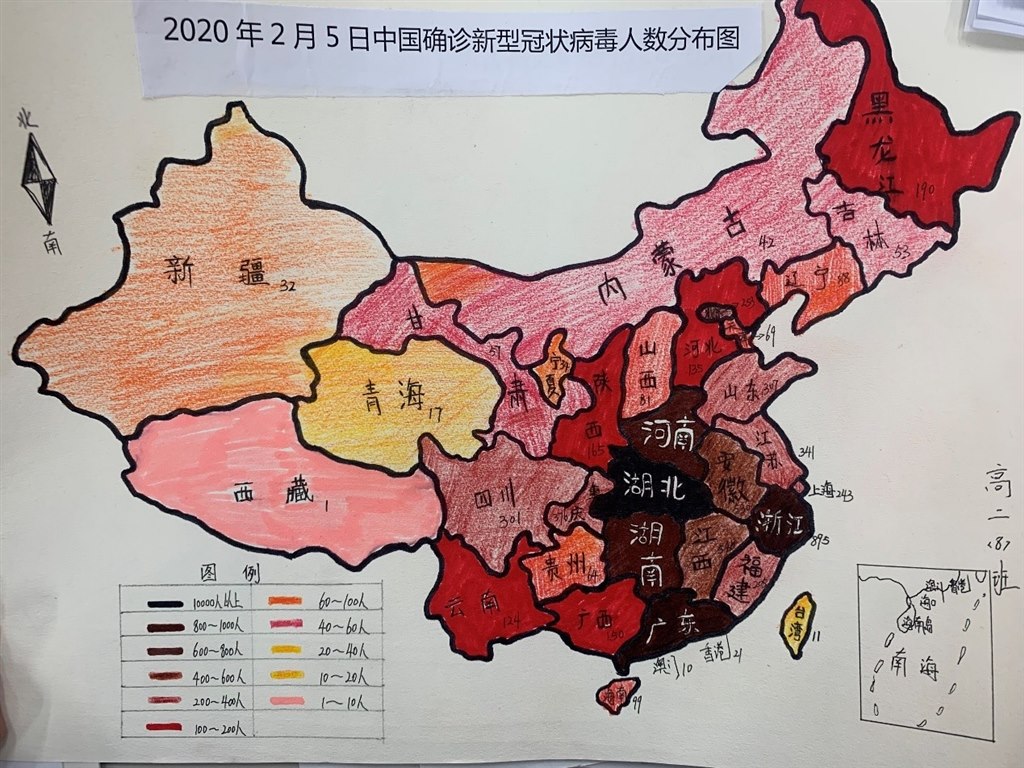 漫长的寒假,并不意味着学习停滞。为教育引导同学们正确认识新型冠状病毒相关常识,及时做好病毒预防,同时为增强同学们的绘图技能,了解绘制地图的基本原则,丰富课外文化生活,激发地理学习兴趣,培养动手实践能力。地理组开展了主题为“心系疫情,共克时艰”的地图绘制比赛。